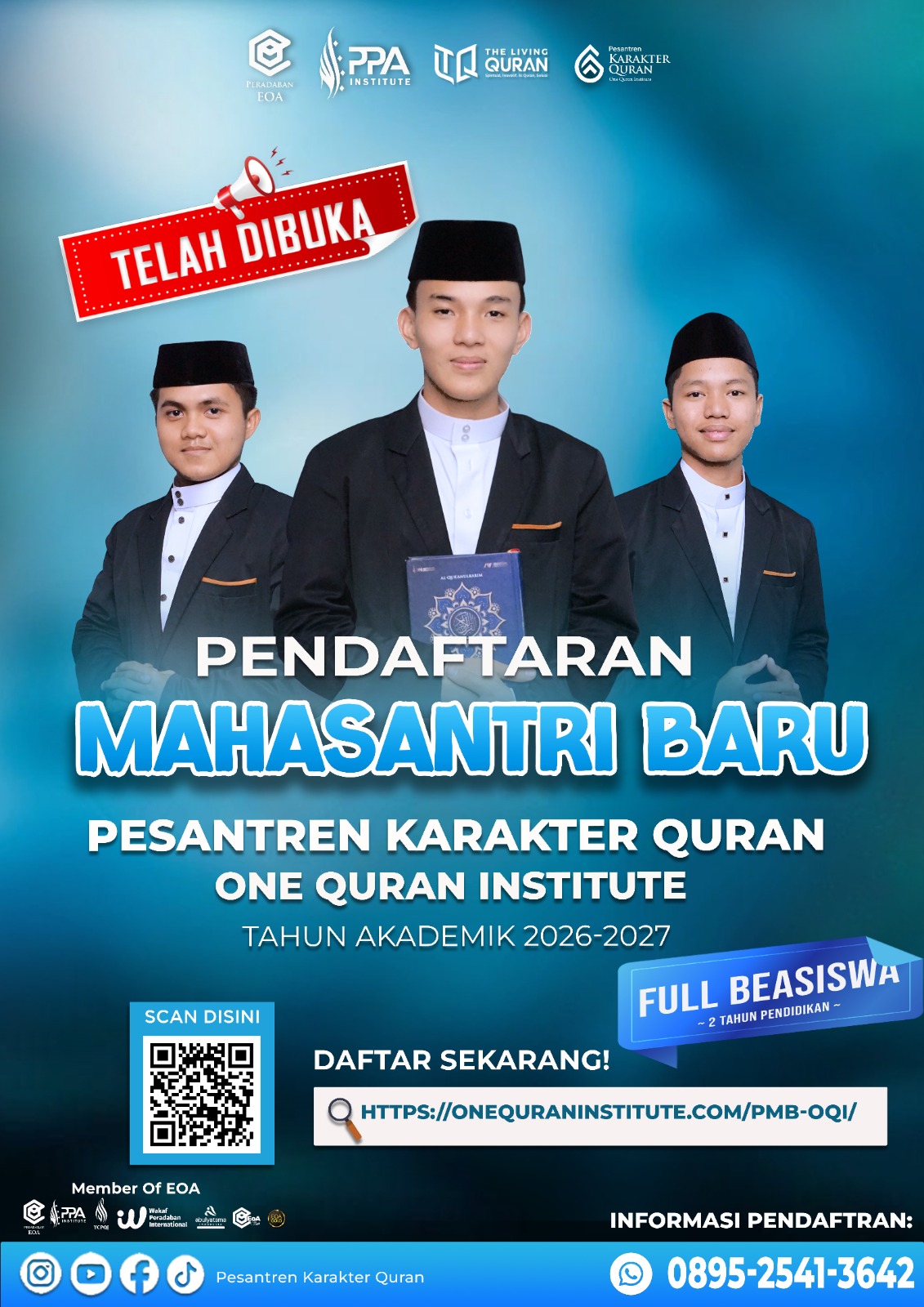 📢 PENERIMAAN MAHASANTRI BARU PESANTREN KARAKTER QURAN ONE QURAN INSTITUTE ANGKATAN 10 TAHUN AJARAN 2026/2027 📢